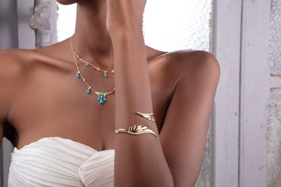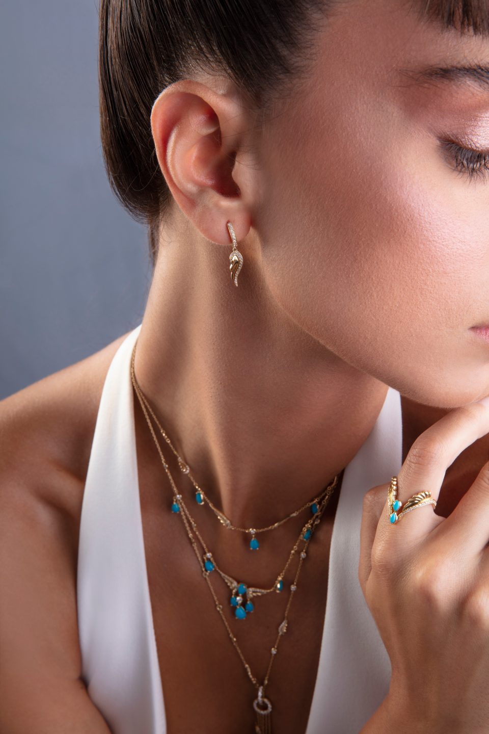 Charming Tassel Wings Turquoise and Diamonds Necklace
